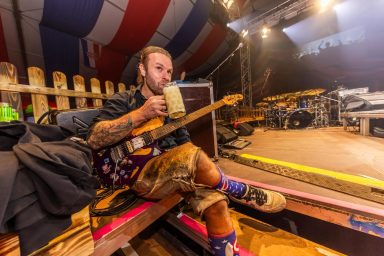 Wenn er gerade nicht hinterm Schlagzeug sitzt, trifft man ihn auf Festivals, Ausflügen oder beim gemütlichen Essen mit Familie und Freunden. Doch nichts geht über die Hausmannskost seiner Oma - am besten fränkische Bratwurst oder Kesselfleisch mit Kraut!