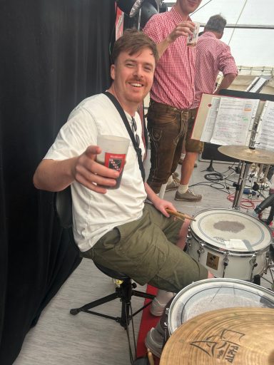 Philipp an den Drums - besser bekannt als "Teflon" - bildet mit seinen unverkennbaren Grooves das Rückgrat der Band. Musikalisch lässt er sich in keine Schublade stecken: von böhmisch-mährisch bis Heavy Metal - Hauptsache, es kommt von Herzen.