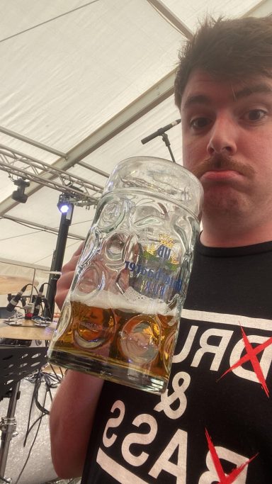 Wenn er gerade nicht hinterm Schlagzeug sitzt, trifft man ihn auf Festivals, Ausflügen oder beim gemütlichen Essen mit Familie und Freunden. Doch nichts geht über die Hausmannskost seiner Oma - am besten fränkische Bratwurst oder Kesselfleisch mit Kraut!