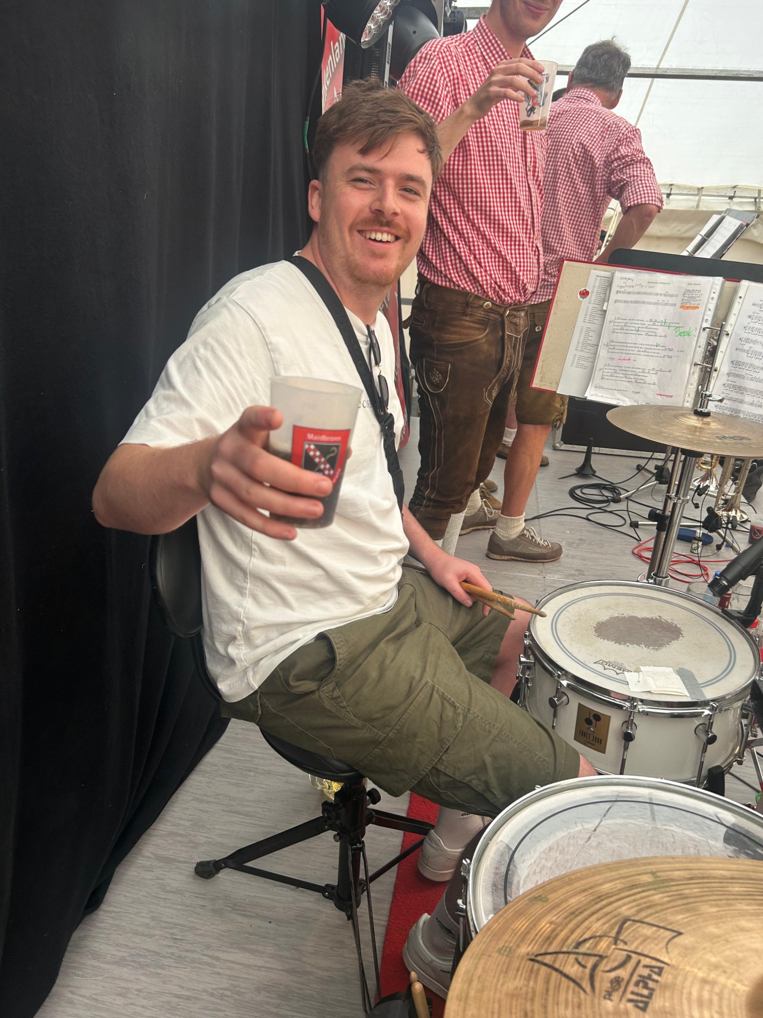 Wenn er gerade nicht hinterm Schlagzeug sitzt, trifft man ihn auf Festivals, Ausflügen oder beim gemütlichen Essen mit Familie und Freunden. Doch nichts geht über die Hausmannskost seiner Oma - am besten fränkische Bratwurst oder Kesselfleisch mit Kraut!